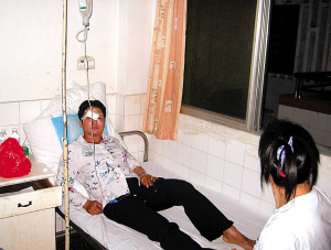 晚上8時(shí)許,記者走進(jìn)了中醫(yī)院的外科病房,除110室的一位女傷者仍在昏迷中外,其余4人均在二樓外科病房接受觀察治療。41歲的李雪×右眼逢了5針,她來(lái)自超竹鎮(zhèn),以踩三輪車載客為生。談起突如其來(lái)的一幕,她說(shuō)一時(shí)間覺得好像一部推土機(jī)向她推來(lái),以后就失去了知覺。