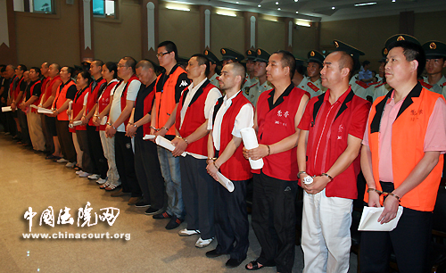 早晨8點(diǎn)左右,唐亞南等23名原審被告人由警車押送到庭,八點(diǎn)半左右,開始開庭審理。審判長(zhǎng)宣布開庭后,唐亞南等23名原審被告人被帶入庭審現(xiàn)場(chǎng),站到法庭的被告席上。法官當(dāng)庭宣讀了一審判決書,一審判決以集資詐騙罪判處原審被告人唐亞南死刑,剝奪政治權(quán)利終身,并處沒收個(gè)人全部財(cái)產(chǎn);以集資詐騙罪判處原審被告人丁魁元死刑,緩期二年執(zhí)行,剝奪政治權(quán)利終身,并處沒收個(gè)人全部財(cái)產(chǎn);以集資詐騙罪判處原審被告人李全才、鄧書杰、彭標(biāo)、李凱無(wú)期徒刑,剝奪政治權(quán)利終身,并處沒收個(gè)人全部財(cái)產(chǎn)。其他15名原審被告人分別以隱瞞犯罪所得罪、非法吸收公眾存款罪、集資詐騙罪被判處三年至十五年不等的有期徒刑;另兩名原審被告人被判非法吸收公眾存款罪,因情節(jié)輕微,免予刑事處罰。一審宣判后,唐亞南等19名原審被告人提出上訴。