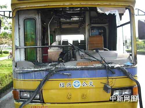10分鐘后,越城消防大隊(duì)的官兵到達(dá)現(xiàn)在,公交車(chē)的車(chē)頭在大火的烤制下?lián)躏L(fēng)玻璃已經(jīng)全部爆裂,整個(gè)駕駛室也已一片焦黑,指揮員立即下令出2支水槍控制余火,防止車(chē)子溫度一升高導(dǎo)致郵箱爆炸,5分鐘后,余火完全熄滅,消除了危險(xiǎn)。
