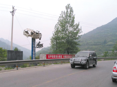 最牛安全警示:報(bào)廢車20米高空“示眾”(圖)