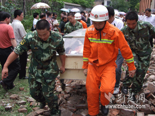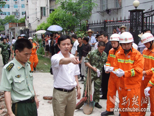 事故發(fā)生后,石首市市委書記鐘鳴、市長張善彩、石首市市委常委、紀(jì)委書記張遠(yuǎn)梅、公安局長唐敦武迅速趕赴現(xiàn)場,指揮公安、消防、醫(yī)療等部門做好事故處置工作,并組織人員清理現(xiàn)場磚塊。經(jīng)法醫(yī)驗(yàn)尸后,2名遇難者遺體被消防官兵抬上殯棺送往殯儀館。