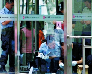 事發(fā)中國(guó)銀行位于北科大籃球場(chǎng)西側(cè),高兩層,分為對(duì)私業(yè)務(wù)區(qū)和基金業(yè)務(wù)區(qū)。昨日中午12時(shí)10分許,顧客王明(化名)進(jìn)入該行準(zhǔn)備提款!叭抛簧献奈鍌(gè)顧客,兩個(gè)開放的銀行窗口前各有人在辦業(yè)務(wù)!蓖趺髡f。