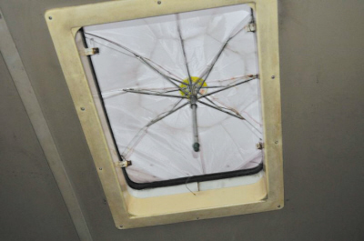 近日,網(wǎng)友在大渝網(wǎng)上發(fā)帖《公交車內(nèi)雨傘遮頭》,該網(wǎng)友稱,前幾天出門,自己上了一輛373路公交車,剛一坐到位置上,頓時被雷倒了。他稱,公交車上的天窗竟然變成了一把雨傘,雖然有點夸張,倒也還算密不透風。該網(wǎng)友笑稱:“這一定是重慶新發(fā)明的天窗,方便在車子燃燒的時候逃生。”