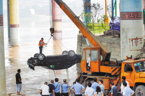 昨日上午10點,記者趕到現(xiàn)場時,3艘漁船仍然在磁器口碼頭下游約150米處作業(yè)。漁民周木德稱,那名逃生男子就是從那里爬上岸的,“據(jù)他估計,車就是從這兒沉的。”岸邊,一對中年夫婦滿臉愁容,“開車的是我的兒子熊林,車里面還有個女孩,是兒子的朋友,沒逃出來。”