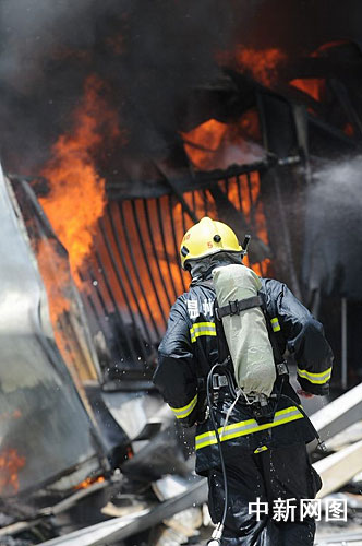 如果要盡早控制火勢,必須打通坍塌倉庫內(nèi)部的通道,讓水流能夠射到里面。情況迫切,消防戰(zhàn)士掄起鐵錘,不顧被大火燒烤后的高溫,強(qiáng)行將倉庫的墻體打通。然后,消防官兵冒著倉庫二次坍塌的危險以及高溫,鉆進(jìn)倉庫內(nèi)部對里面的火情進(jìn)行撲救。