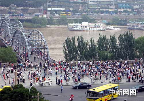 中新網(wǎng)蘭州7月22日電 (記者 劉薛梅) 為觀看500年一遇的罕見(jiàn)天象日全食,7月22日一大早,甘肅蘭州百年鐵橋中山橋廣場(chǎng)陸續(xù)聚集了近千人,借助西北師大天文臺(tái)提供的專業(yè)觀測(cè)設(shè)備,欣賞蘭州上空出現(xiàn)的日偏食。