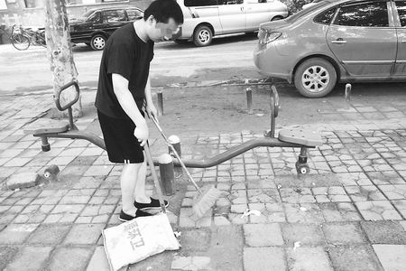 昨日上午11時,記者趕到鄭上路省紡機社區(qū)時,看見張月正在清掃小區(qū)健身區(qū)的地面(如圖)。巡防隊員朱幸說,張月的事見報后的第二天,他和隊友郭長河就成了張月家的常客,找他談心,經(jīng)多次做工作,張月才同意到醫(yī)院治療。7月22日,在鄭州市第八人民醫(yī)院治療了一個月的張月,康復(fù)出院回家。到家后,張月仍不愿出門,朱幸和郭長河又多次找張月聊天。社區(qū)主任王曉波也主動到張月家,每天上班時,他都要把張月叫到社區(qū),讓他幫忙干點零活。經(jīng)過溝通和交流,張月變得開朗了許多,成了一名編外保潔員。王曉波說,社區(qū)為張月申請辦理了低保,讓他享受每月275元的最低生活保障! 跤浾呃顛箤嵙(xí)生吳瓊文首席記者閆化莊圖