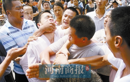 這時(shí)又沖來(lái)一中年男子,與執(zhí)法隊(duì)員撕扯起來(lái),場(chǎng)面一片混亂。一攤販告訴記者,這人是朱林的丈夫,姓許,信陽(yáng)固始人,兄妹八人都在附近做生意。這一帶賣水果的都是信陽(yáng)老鄉(xiāng),來(lái)鄭做生意已有十多年。