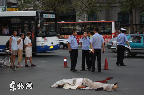 11日18時30分,記者在現(xiàn)場看到,死者頭部已被覆蓋,身旁有一灘長約一米的血跡。哈爾濱市交警支隊道里大隊已在現(xiàn)場處理相關(guān)事宜。據(jù)目擊者介紹,事故發(fā)生時間為16時40分許,一公交車在拐進站臺時,將一男子當場撞死。事發(fā)僅10分鐘,道里大隊的工作人員就趕到現(xiàn)場。