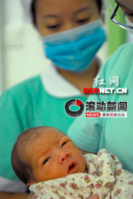 8月15日,當(dāng)老婆被推進(jìn)湖南省人民醫(yī)院產(chǎn)科手術(shù)室進(jìn)行剖腹產(chǎn)的一剎那,老周這個(gè)35歲的精壯粗漢子眼淚當(dāng)場(chǎng)就“嘩嘩”地流了下來。老周說:“6月份李英晚期肝癌確診,醫(yī)院的醫(yī)生之前跟我說過,生孩子的話,很可能母子雙亡。要么不生,留母親。我內(nèi)心里做了斗爭(zhēng),我這人一向很看重孩子,但老婆這樣,我實(shí)在不忍心讓她受這個(gè)苦。我跟她商量,但對(duì)她隱瞞了肝癌一事,只告訴她,肝部長(zhǎng)了瘤子,生孩子會(huì)有危險(xiǎn),果然,老婆堅(jiān)持要生孩子,我也就在協(xié)議書上簽了字!弊呃壬希现苣厝计鹨混南,跪在地上深深低著頭一動(dòng)不動(dòng)的祈禱,他認(rèn)為此時(shí)能做的只有這件事了。