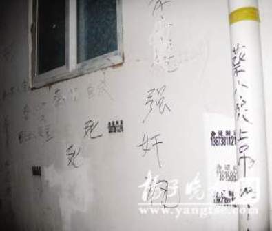 “看見兩個女子趁黑在墻上寫東西,現(xiàn)在看來就是寫這些東西了。”一位目擊者告訴記者,前天晚上,趁著天黑,有兩名女子來到明園這戶居民家門前,開始寫東西,左寫右寫,寫了約摸有十幾分鐘就走了,昨天早上8點多,戶主起床開門后,這才發(fā)現(xiàn)自家墻上及附近低矮的圍擋板上,均有指名道姓的罵人語句。記者看到,從戶主蔡先生家門兩邊向外,以及對門的圍擋板上,留有大黑簽字筆寫下的罵人語句,諸如“蔡某某人渣”、“蔡某某缺德”、“蔡某某強奸犯”等等,還有一些更加不堪入耳辱罵的話,讓人看了瞠目結(jié)舌。粗略數(shù)數(shù),多達(dá)十幾處。