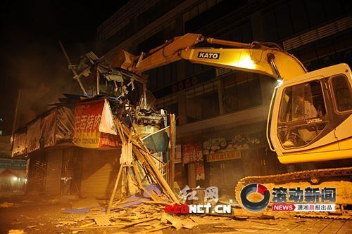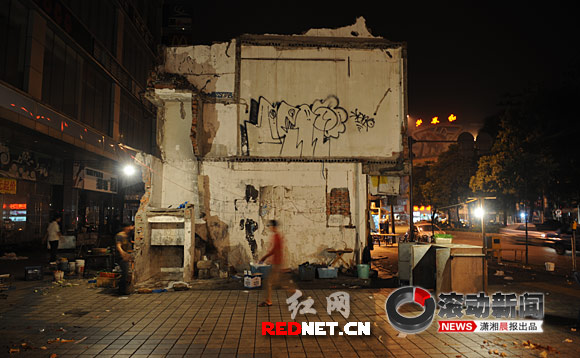 這位工作人員說,南門口緊臨黃興南路商業(yè)步行街,人流量和車流量都相當(dāng)大,直到晚上12點還很熱鬧。被拆遷的這棟房屋就在路邊,如果白天拆除,對行人和車輛恐怕都不太安全。