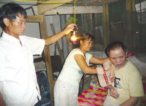 楊海英熱情地跟記者打招呼:“不好意思,家里又小又亂,你們隨便坐吧!币?yàn)樯畹牟賱,這位才40歲的侗族婦女顯得比同齡人蒼老,但黝黑的臉上帶著淳樸的微笑,又給人樂(lè)觀堅(jiān)強(qiáng)的感覺(jué)。