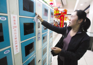 9月15日晚,楊女士的兒子小王和朋友到這家超市購物。小王將包存在免費存包柜里,包里不僅有身份證等物品,還有一部手機。當時密碼紙上打印的存包時間為18時25分。