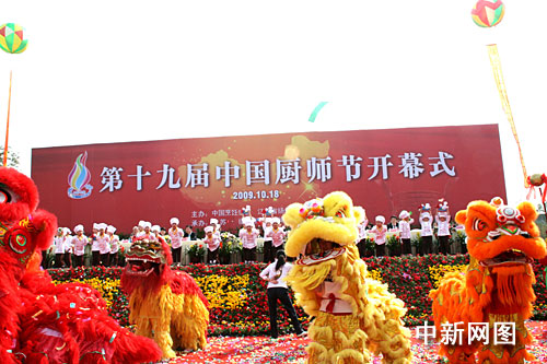中新網(wǎng)揚州10月18日(記者 崔佳明)第19屆中國廚師節(jié)在中國淮揚菜之鄉(xiāng)揚州盛大開幕。國務(wù)院原國務(wù)委員兼秘書長、第十屆全國政協(xié)副主席王忠禹、水利部原部長、第十屆全國政協(xié)常委、民族宗教委員會主任鈕茂生、國家商務(wù)部副部長姜增偉、原商業(yè)部副部長張世堯、世界廚師聯(lián)合會主席古德穆德森、中國烹飪協(xié)會會長蘇秋成、揚州市委書記王燕文、代市長謝正義和參加首屆中國市長餐飲發(fā)展論壇的19個城市的市長和嘉賓以及來自各省市餐飲行業(yè)的負(fù)責(zé)同志和廚師代表出席開幕儀式。