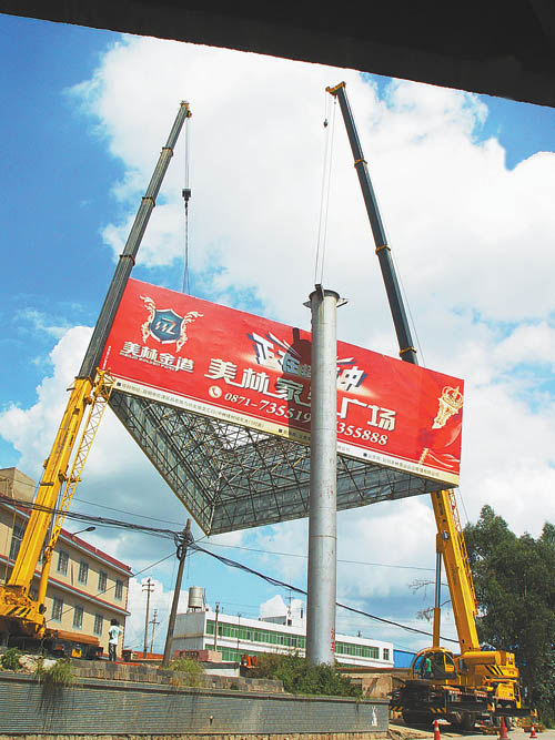 9月18日,記者在昆明國際會展中心附近看到,兩棵單立柱廣告牌正在被大吊車吊起。隨后幾天,記者在昆明的城南、城北地區(qū)都看到有關(guān)部門在拆除戶外廣告牌。記者從昆明市城管局獲悉,截至9月24日,昆明市主城區(qū)共拆除單立柱200棵。其中,五華區(qū)、高新區(qū)、度假區(qū)、呈貢已提前完成拆除任務(wù)。盤龍區(qū)、經(jīng)濟技術(shù)開發(fā)區(qū)也開始拆除高等級道路兩側(cè)的單立柱廣告。在昆明當(dāng)?shù)兀S嗟膯瘟⒅鶑V告已經(jīng)屈指可數(shù)。