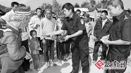 記者昨日由景洪驅(qū)車6個(gè)小時(shí),來(lái)到這個(gè)坐落在深山里的家族村寨。隨行的景洪市公安局民警一進(jìn)入村寨,便立刻召集村民排隊(duì)領(lǐng)取戶口本和身份證。按照相片上的摸樣一個(gè)一個(gè)仔細(xì)核對(duì)清楚后,民警將戶口本和身份證一一發(fā)到村民手中。