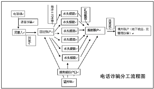專案組確定該案是一個以境外人員為首的組織嚴密的犯罪團伙所為。該團伙通過網(wǎng)絡(luò)電話撥打事主電話,以事主家庭電話欠費、銀行賬號涉嫌違法等為借口,騙取事主將賬戶內(nèi)的錢轉(zhuǎn)賬或提取現(xiàn)金后存入團伙成員提供的“安全賬戶”內(nèi),并通過頻繁轉(zhuǎn)賬將賬戶內(nèi)的大額存款分散到多個賬戶內(nèi),其他成員則在全國各地分別提取現(xiàn)金。