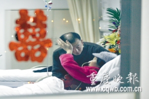 由于病痛折磨,蔣翠有些支撐不住,但她依然堅(jiān)持坐著。張兵將蔣翠強(qiáng)行抱回病床,讓她躺著休息。“沒想到,這場(chǎng)婚禮晚了13年!笔Y翠說,自己1996年和丈夫結(jié)婚時(shí),由于經(jīng)濟(jì)拮據(jù),并沒有舉行婚禮。不過,13年后,在她被病魔糾纏時(shí),丈夫卻以這種形式完成了她的夢(mèng)。