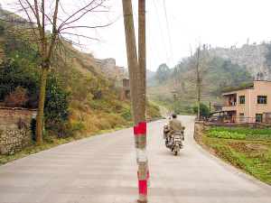 水泥公路中間竟有立著幾根電桿,將公路分成一側(cè)3米寬、一側(cè)4米寬的兩個(gè)車道!斑@究竟是考駕駛員的視力,還是考駕駛技術(shù)?”近一個(gè)多月,北碚龍鳳橋街道龍車村杉樹(shù)灣的居民們,對(duì)家門前3根電桿的議論就沒(méi)停止過(guò)。