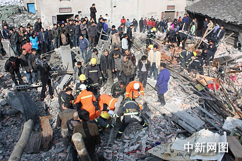 當(dāng)日下午13時(shí)14分,瑞安市消防大隊(duì)接到報(bào)警后,迅速調(diào)集公安現(xiàn)役消防隊(duì)及專(zhuān)職消防隊(duì)6輛消防車(chē)30名指戰(zhàn)員趕到現(xiàn)場(chǎng)實(shí)施救援。消防官兵到達(dá)現(xiàn)場(chǎng)時(shí),現(xiàn)場(chǎng)一片狼藉,百余平方米的房屋已成為廢墟,現(xiàn)場(chǎng)嘈雜聲混成一片,爆炸現(xiàn)場(chǎng)多處起火,火魔開(kāi)始向倒塌民房蔓延,而廢墟下面有多條生命等待著救援,現(xiàn)場(chǎng)情況十分危急。消防官兵立即出兩支高壓水槍對(duì)火勢(shì)進(jìn)行控制,同時(shí)救援小組迅速展開(kāi)營(yíng)救。