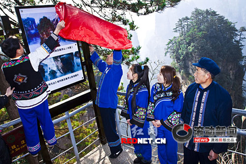 帖子描述稱(chēng),1月25日上午,張家界數(shù)名身著土家族服裝的原住居民為“南天一柱”(又名“乾坤柱”)更名標(biāo)識(shí)牌舉行了揭牌儀式。