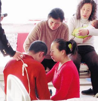 在沈北新區(qū)醫(yī)院婦產(chǎn)科的病房內(nèi),關(guān)某一見到母親、妻子和孩子,就跪在了地上淚如雨下,他的妻子也跪在他身旁,“你好好改造,我會(huì)好好照顧孩子,我不會(huì)和你離婚的!你把人家撞死了,給人家家庭帶來多大的傷害啊!我還能看見你,可是人家孩子卻看不著媽了!你好好改造吧,不用惦記我們!”關(guān)某的妻子安慰著丈夫。關(guān)某的母親一直邊哭邊捶打著兒子,“家里只有兒子還能賺些錢,現(xiàn)在他進(jìn)監(jiān)獄了,家里怎么辦?孫子和兒媳婦怎么辦?”