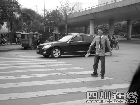 昨日是小長(zhǎng)假第一天,雙橋路的車流量并不多,但這個(gè)小伙子卻在二環(huán)路口忙了一天,他比劃著夸張的交警手勢(shì),指揮著交通,看見(jiàn)過(guò)馬路的老人和小孩還會(huì)上去扶一把。
