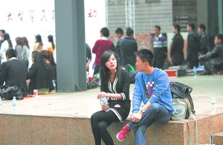 市民吳先生夫婦帶著女兒小倩(化名)和女兒的姨媽一起來到相親現(xiàn)場。4人坐在活動(dòng)現(xiàn)場后方的草坪上觀看,不時(shí)對(duì)上場的男士作一番點(diǎn)評(píng)。吳先生說,女兒今年22歲,在某民航學(xué)院念大四,今年6月份畢業(yè)!八厴I(yè)后立志要當(dāng)空姐,擇婿的標(biāo)準(zhǔn)自然不能低。警察好啊,穩(wěn)定!”吳先生的妻子說。