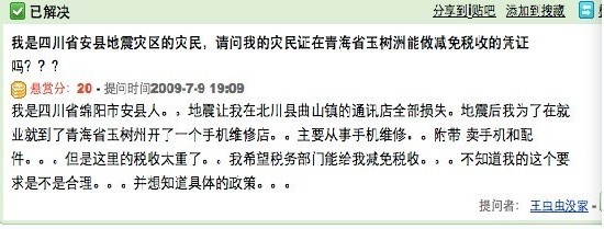 玉樹(shù)地震發(fā)生當(dāng)日,一位名叫“王蟲(chóng)蟲(chóng)沒(méi)家”的網(wǎng)友,因?yàn)樵谌ツ?月百度知道上發(fā)出的一個(gè)帖子被人重新翻起,而成了數(shù)萬(wàn)網(wǎng)友關(guān)注的焦點(diǎn)。這位網(wǎng)友曾經(jīng)在北川開(kāi)了一家手機(jī)維修店,5.12汶川大地震中北川被震毀,幸存下來(lái)的“王蟲(chóng)蟲(chóng)”在震后選擇到玉樹(shù)州重新創(chuàng)業(yè),并想開(kāi)一家手機(jī)維修店。“王蟲(chóng)蟲(chóng)”的這番遭遇,引起了網(wǎng)民的高度關(guān)注,“王蟲(chóng)蟲(chóng)”也被網(wǎng)友稱為最悲情的人物。因?yàn)椤巴跸x(chóng)蟲(chóng)”最后一次上網(wǎng)登錄的時(shí)間已是地震一個(gè)月前了,他(她)能否再次躲過(guò)這一次天災(zāi),成了眾多網(wǎng)友關(guān)注的焦點(diǎn)。四川在線記者在到達(dá)玉樹(shù)后不久,想盡辦法找尋這位網(wǎng)友。