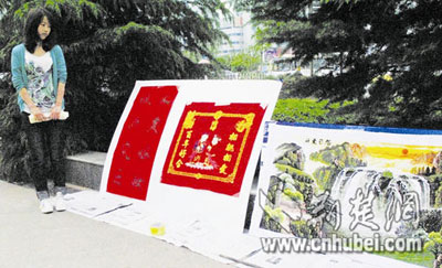 兩個半小時后,當(dāng)李脈準(zhǔn)備返校時,還沒有路人買下她的嫁妝。一名路人說,雖然他認(rèn)同這名女生的行為,但是一幅十字繡賣幾萬元,太貴。 (楚天金報記者邵娟 大學(xué)生記者萬真 通訊員潘子儒)