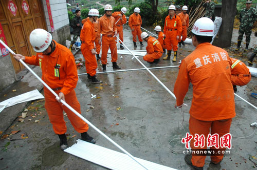 據(jù)統(tǒng)計,從災害發(fā)生至7日下午14時,重慶消防參戰(zhàn)突擊隊150名官兵共營救被困群眾18人,疏散群眾361人,幫助搭建和維修房屋40戶,排除險情、路障76處,出動救援消防車輛60臺(次),出動官兵430人(次),搭建應急救災帳篷56頂。完