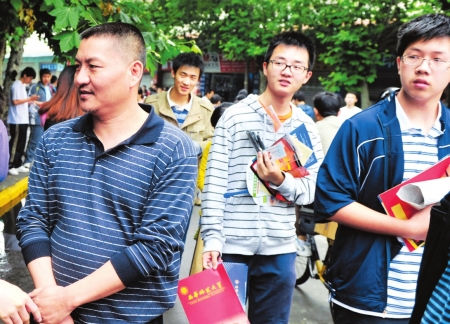 對下午的數學,他也感覺發(fā)揮得不太好!2002年考了70多分,2006年考了50多分,今年還說不清楚!睆土晻r他在英語上下了不少功夫,希望今天的考試能夠再順一些。