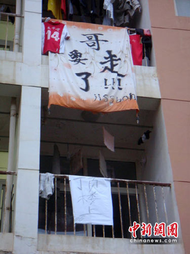 原來(lái),湖南農(nóng)業(yè)大學(xué)一位臨近畢業(yè)的大四學(xué)生別出心裁地把“哥要走了”的“吶喊”寫在被子上,并懸掛于陽(yáng)臺(tái)上,樓下現(xiàn)實(shí)版“跟帖”——“頂樓上”,被網(wǎng)友戲稱為“被子哥”。一時(shí)間該圖片在國(guó)內(nèi)某知名社交網(wǎng)站迅速躥紅,被網(wǎng)友廣泛分享“瘋”傳。