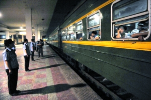 昨晚還有數(shù)百“火車迷”聚集在豐臺(tái)站,拍照、攝像、收藏站臺(tái)票、揮手告別。直至凌晨,豐臺(tái)火車站依然喧囂。23時(shí)20分,準(zhǔn)備乘坐4452次車的“火車迷”們,已在候車。他們當(dāng)中,最大的70多歲,最小的只有6歲。