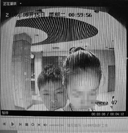 就在零點59分的時候,ATM機經(jīng)過了輸入密碼等一系列操作,吐出了現(xiàn)金,還有電子語音提示:“請?zhí)崛‖F(xiàn)金”。突然,屏幕上出現(xiàn)了一張臉,跟小方姑娘挨得特近,幾乎就湊在她脖子后面了;隨即小葉姑娘渾身一顫,兩眼翻白,腰部往前一挺,整個人往地下倒去。原來就是這個面目猙獰、比小葉姑娘矮上半個頭的劫匪把刀頂在了她腰上。