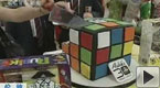 同期:主持人(“太古廣場杯”中國魔方挑戰(zhàn)賽10人挑戰(zhàn)最短時間內(nèi)復原1000個魔方最后用時是54分15秒94)