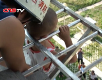 廣西幼童爬防盜窗失足卡頭懸空獲救