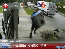 實(shí)拍:快遞員亂投郵包 30米外“投射入門”