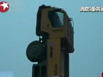 實(shí)拍:河南一吊車(chē)側(cè)翻 三人被困12米高空