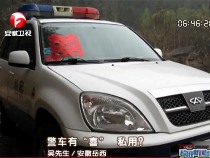 警車前擋風(fēng)玻璃貼紅雙喜 又見(jiàn)公車私用?
