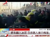 實拍:轎車墜入冰河 百余路人齊力拖車救人