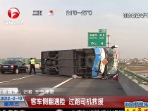 客車高速側(cè)翻遇險 過路司機齊力救援