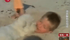男子發(fā)現(xiàn)鴨子被凍湖面 跳湖破冰救援