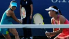 【解說】趕到對岸時,消防指戰(zhàn)員立即下令開始救援,先由一名戰(zhàn)士順著水勢游至最近的一棵樹,并將救援繩的另一端綁在樹上。同時,岸上的人將安全繩拉直并固定在樹上。
