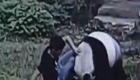 大灰熊誤入居民后院 被寵物狗嚇得翻墻逃跑