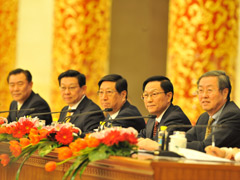 - 主持人李連寧:2010-3-6 10:04出席今天記者會并回答大家提問的嘉賓有:國家發(fā)展改革委員會張平主任、財政部謝旭人部長、商務部陳德銘部長和中國人民銀行周小川行長。他們將就加強和改善宏觀經(jīng)濟調控來回答大家的提問。