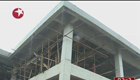 【解說】在事發(fā)海域北海海關碼頭,沙灘上的“北油3”輪船身傾斜,撞上碼頭邊的一個由鋼筋水泥澆鑄的沉箱并擱淺。船體底部2號艙被撞破一個缺口。清污人員正在圍油欄內利用吸油氈吸附海面油污,油罐車對船上余油進行抽取、轉移。