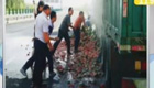 運(yùn)西瓜貨車輪胎過熱自燃 眾人砸瓜救火