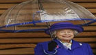 英國女王愛打扮,衣帽胸花雨傘要配套。